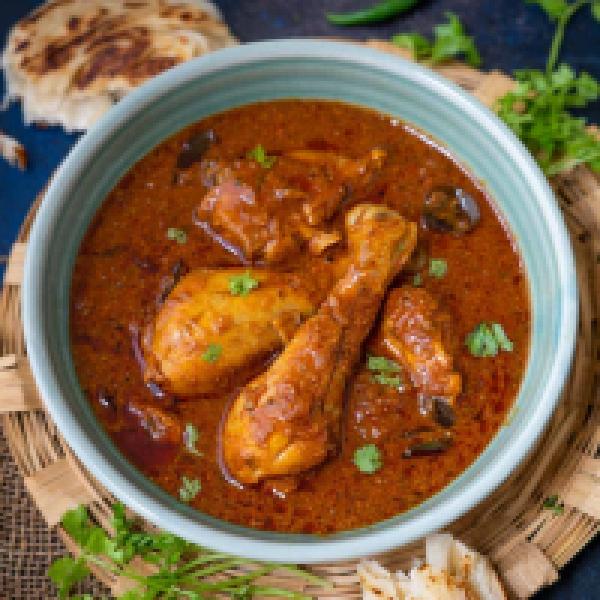 Chicken cooked in an onion & tomato sauce flavored w/ ginger, garlic, & a variety of spices.